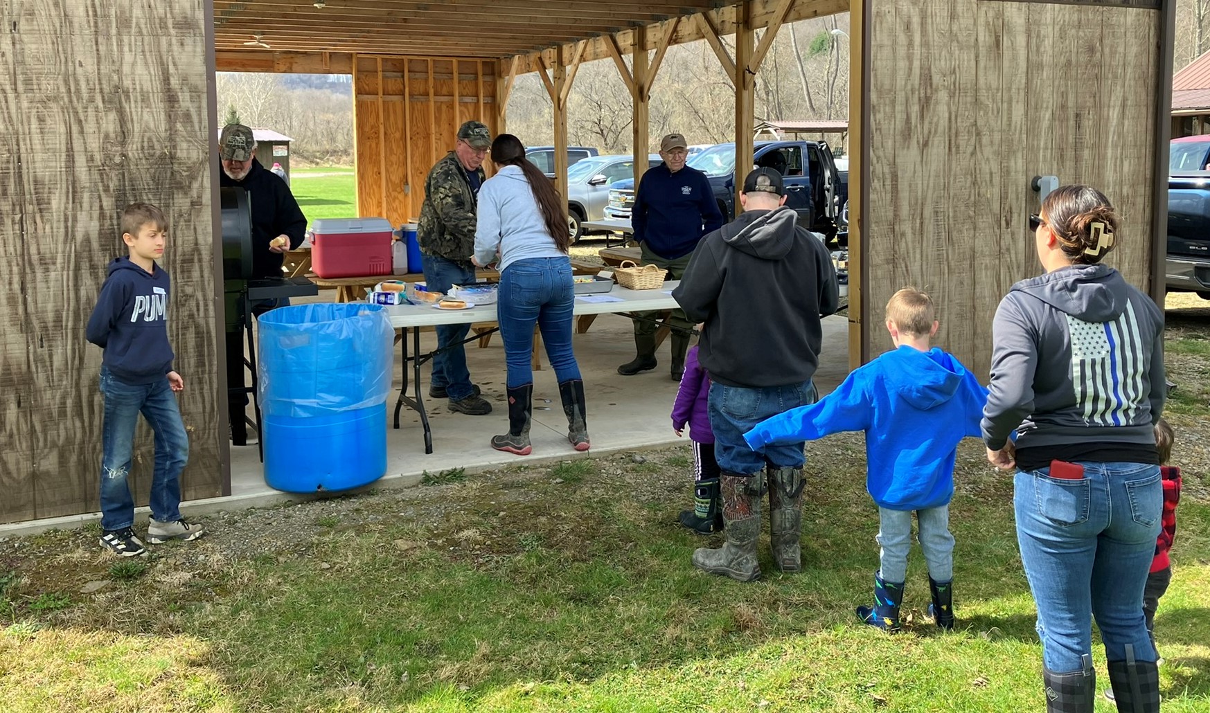Actual records on the Kids’ Annual Fishing Derby are pretty sparse. However, from the photograph below, it is obvious that treating kids to a day of fishing on the club pond began soon after the clubhouse was built in 1942. This photograph was likely taken in or around 1948 to 1950, judging from the vehicles present. As best we can determine, the actual Annual event started and was continued from 1975 onward. That makes 2024 the 50th Annual Kids’ Fishing Derby.
